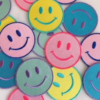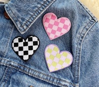 a group of colorful heart shaped buttons on a glass surface
